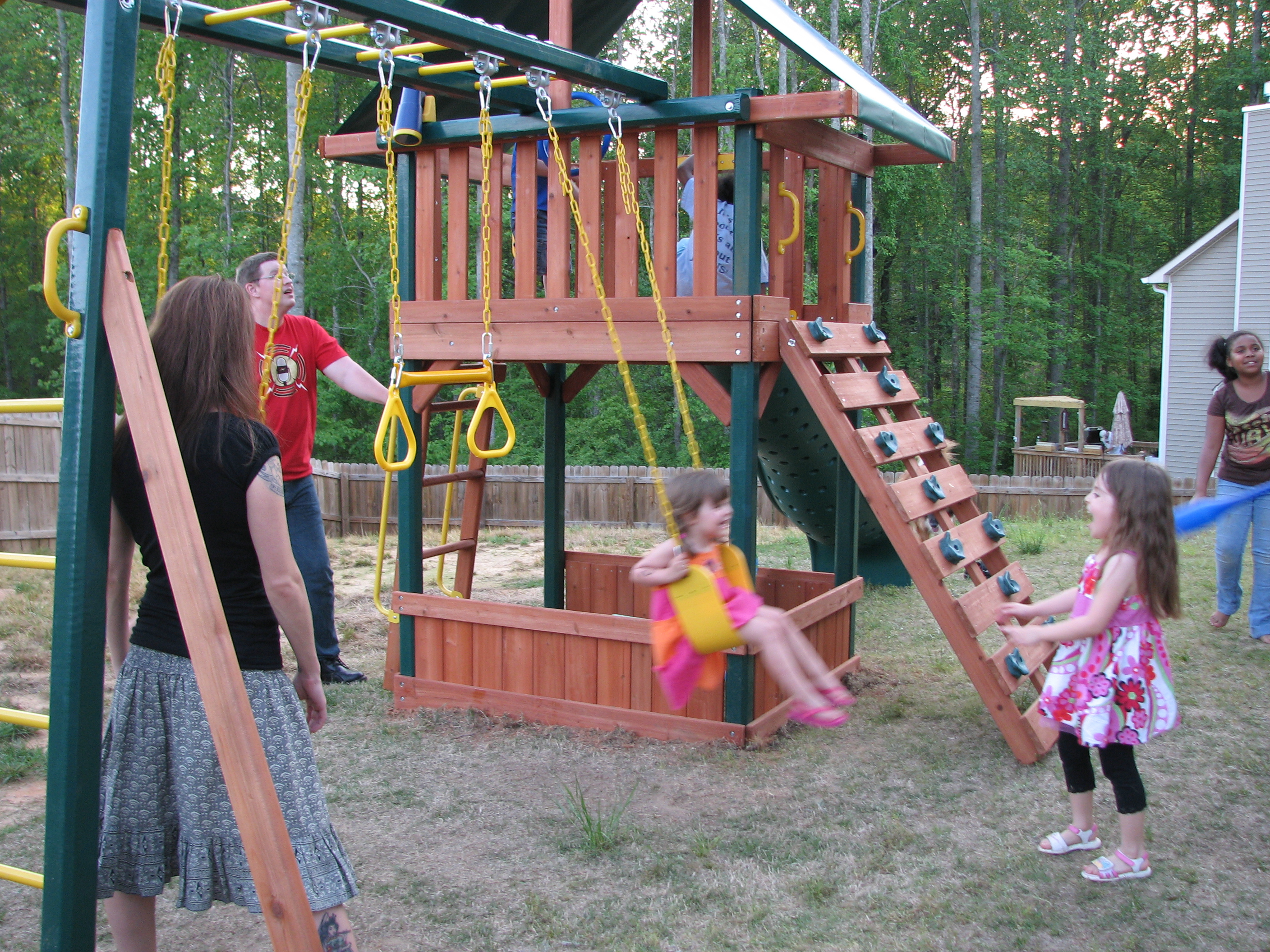 Ever since we moved from Savannah, we’ve been wanting to get an outdoor play set for the kids. It was a decision that didn’t come lightly. Andrew really wanted to make sure he was getting one that would last. He did online searches, he ordered the catalogs, he researched the wood used to make different ones – this was not a spontaneous purchase.