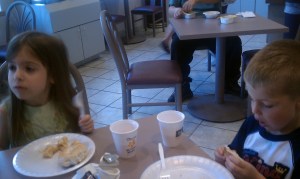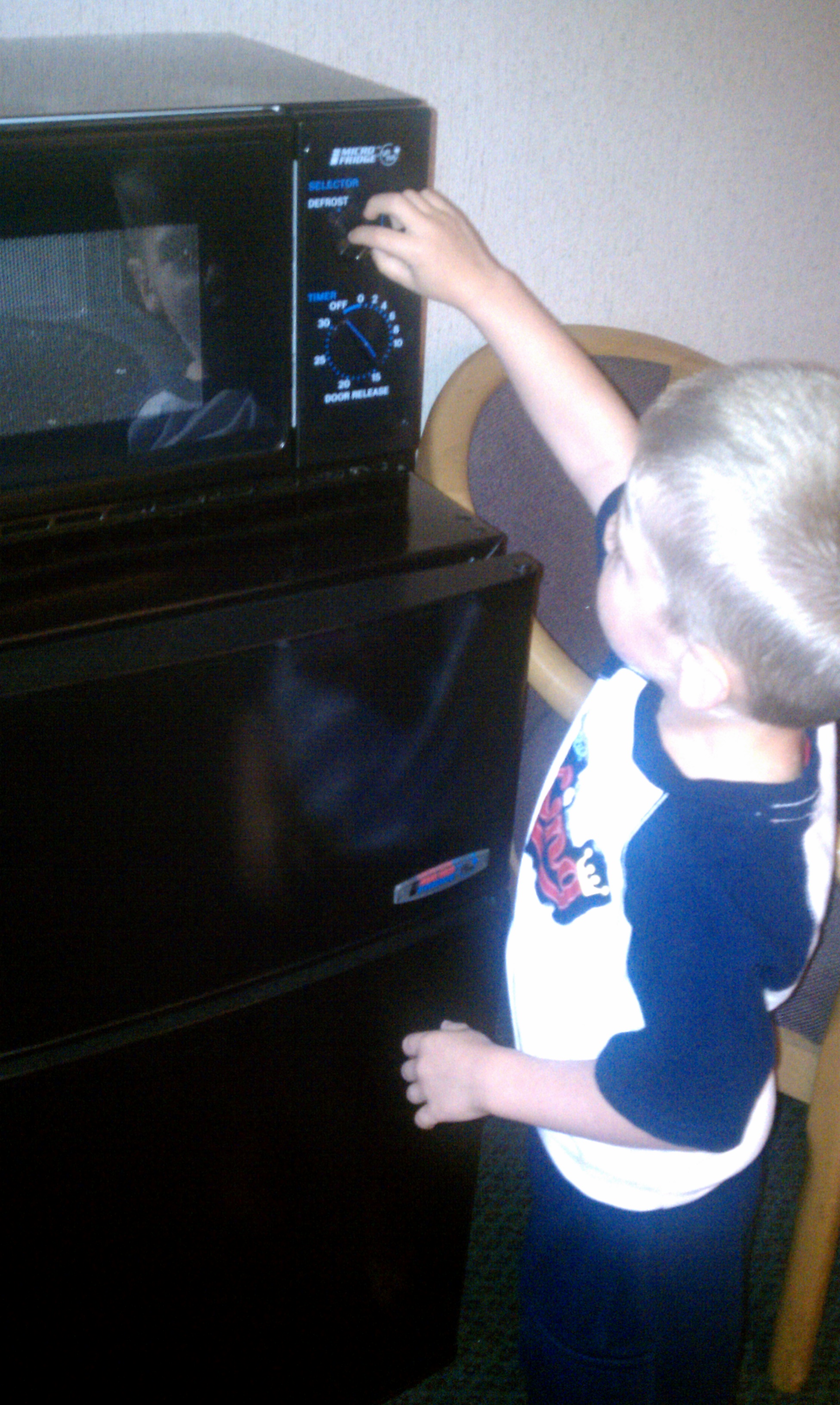 He jumped from bed to bed, was pleasantly surprised when he learned they let us use their towels, wanted to cook popcorn in the mini-microwave, felt like king of the world standing on furniture to reach the sink and thoroughly enjoyed his breakfast of bagel, an apple and some waffle.