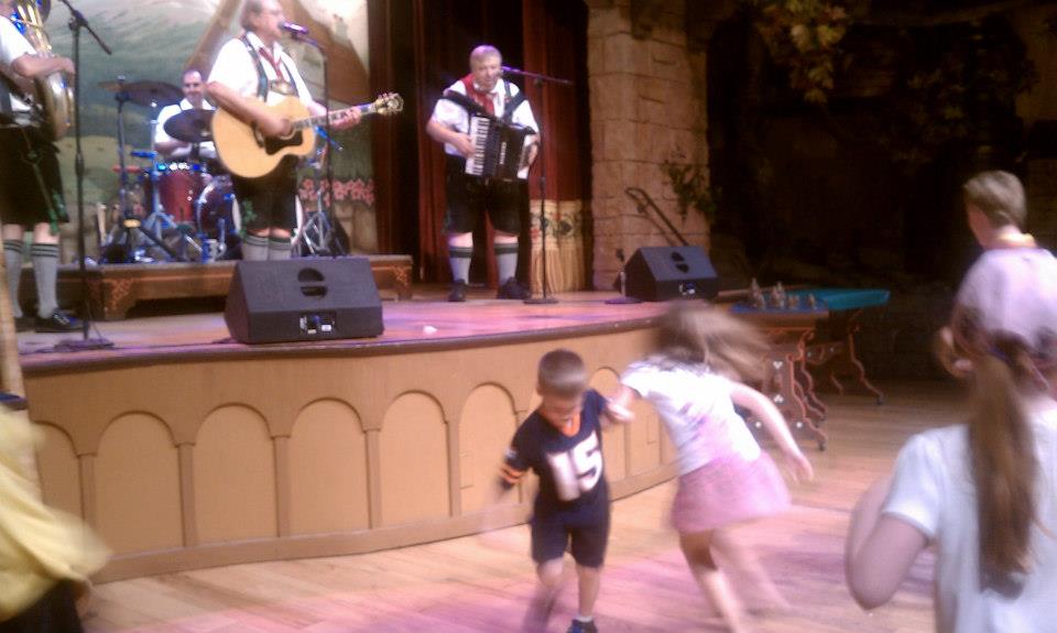 Our favorite meal of the trip though was at Biergarten Restaurant at Epcot’s Germany Pavilion. It was a bountiful buffet of delicious German specialties and it was tough to stop sampling. We splurged for the German beer there as well since alcohol isn’t included in the dining plan. (We just had the regular plan – one snack, one quick/counter service meal, and one table service meal per person, per day.) The kids also were able to get up and dance while the band played. They had a blast.