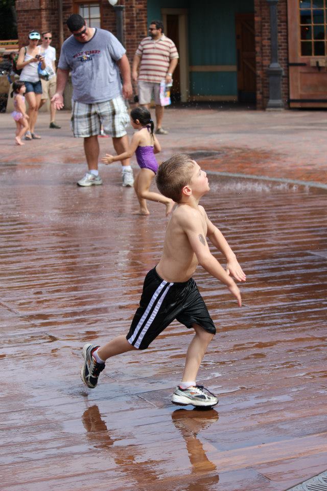 I would bring more at least one extra outfit per person and load up on socks and skivvies. Having the extra pair of sneakers was great due to the rain and the water rides but I should’ve carried flip-flops in my park bag to keep the kids from water-logging while walking. I noticed some people had their kids in swimsuits under their clothes which eliminated the splash zone aftermath. (Nate didn’t want to leave the splash play area but was soaked when he finally did.)