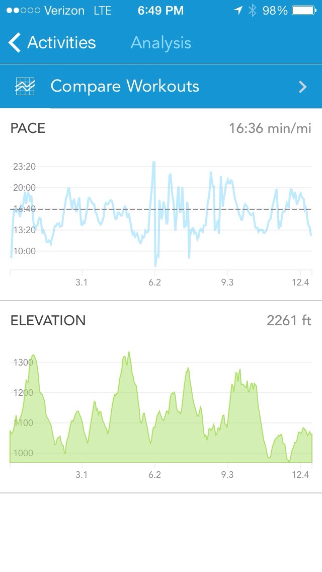 I must have said “you’ve got to be kidding” or “this is ridiculous” or “choice cuss word” at least 10 times each mile. Once we started, the challenge was to finish. The challenge was to not lose my mind. The challenge was to not damage my skull that protects that mind. The challenge was to not stop climbing the hills and to stand tall to conquer them like Andrew kept reminding me to do. At one point toward the end, I began telling myself to keep my knees and feet up, pay attention and don’t get lazy. A lot of it was out loud. So was my rendition of “Funky Town” and Andrew’s duet of “Afternoon Delight” with me. (It was prompted by Anchorman quotes after I started saying things like “I love tree. I love plant. This trail was a bad idea.”)